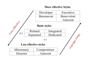 Thus, the four styles results into eight styles. These eight styles results from the eight possible combinations of task orientation, relationship orientation and effectivenss as shown in the figure.